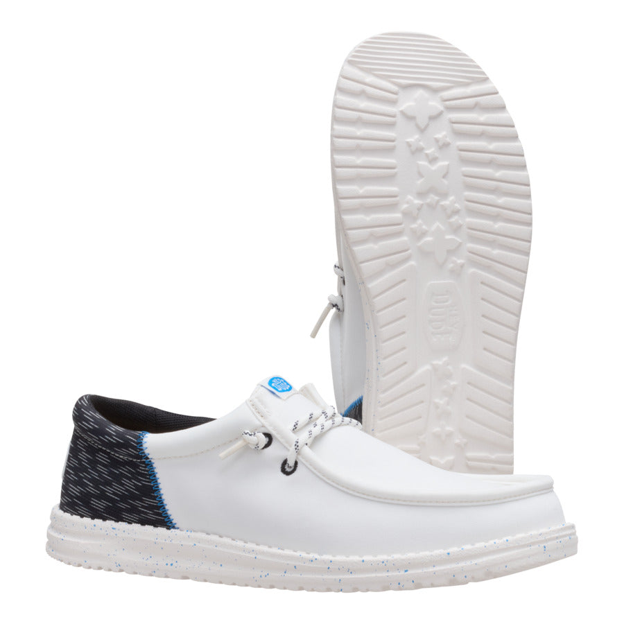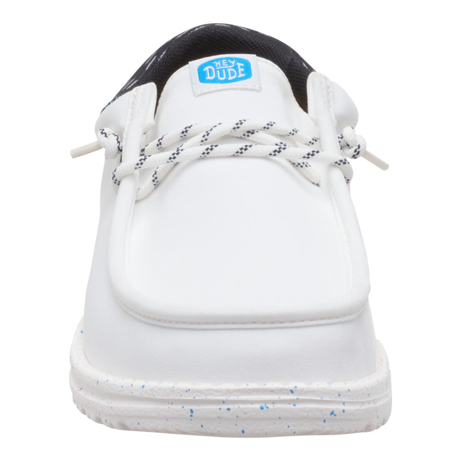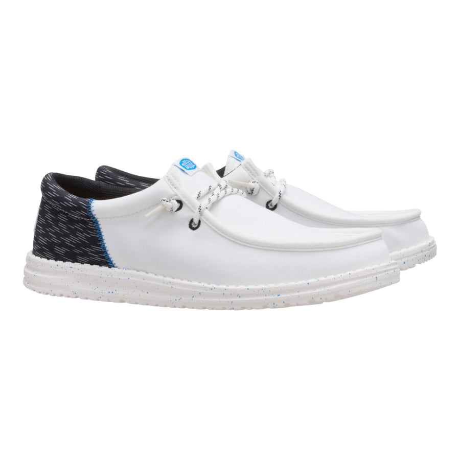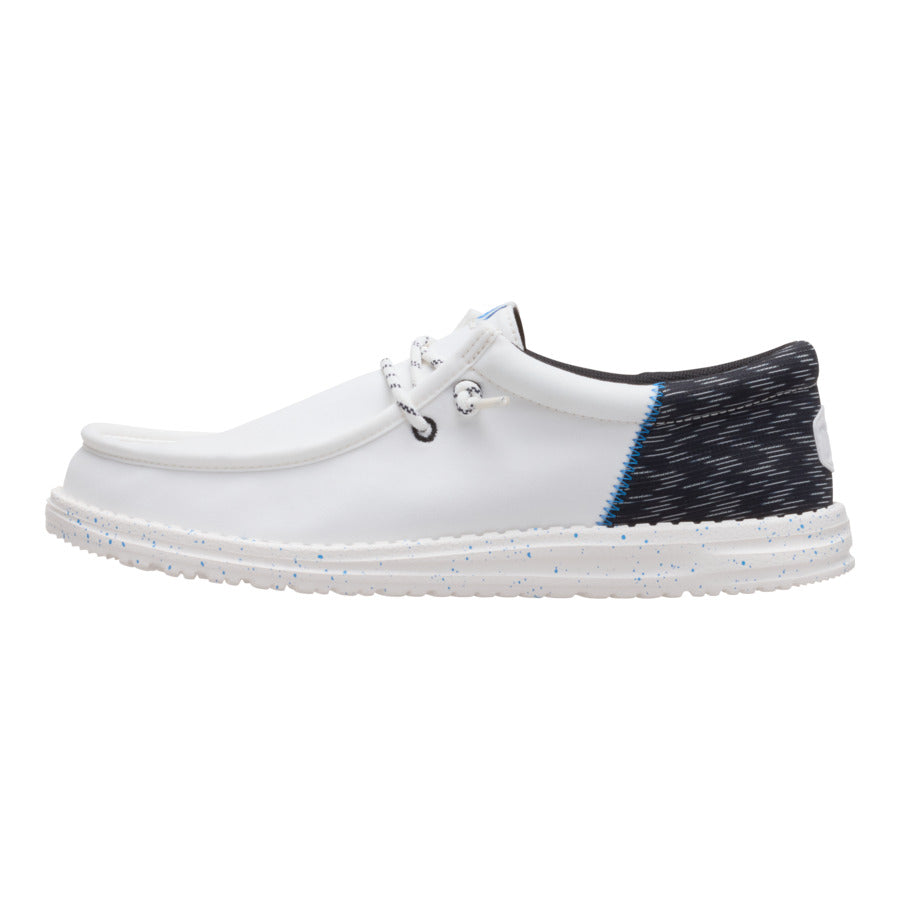 A little bit sophisticated. a whole lotta comfortable. These Wally Funk shoes have a jersey jacquard twill upper with some extra-special texture. Stretch laces and the HEYDUDE easy-on system make entry a breeze and the fit snug. The lightweight. flexible sole feels like floating. with some speckled detail just because.